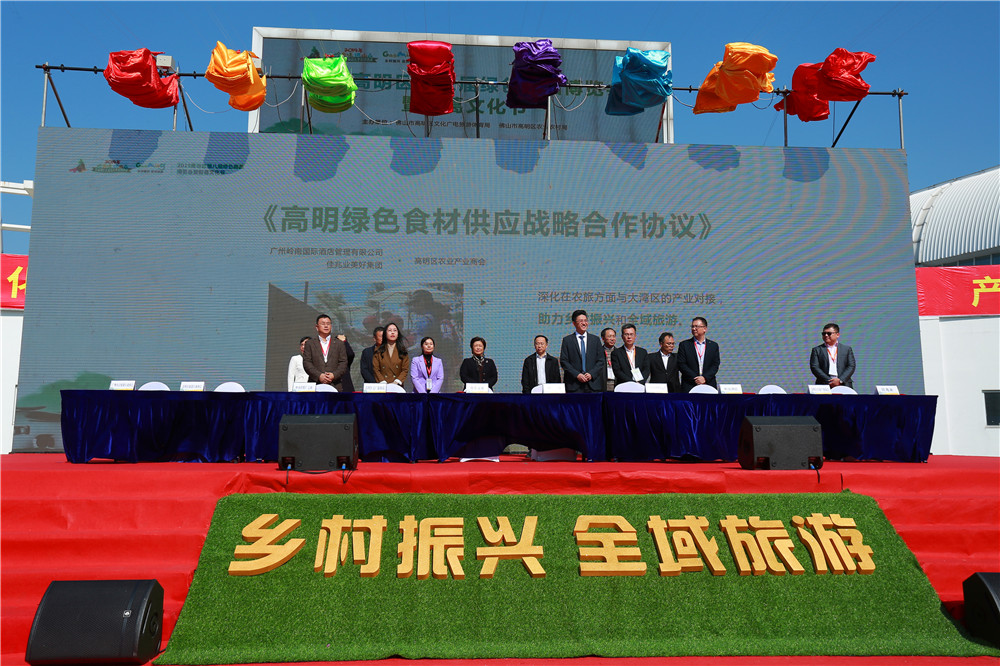 開幕式上進(jìn)行了萬畝水稻、萬畝花卉、萬畝堅果及黿保護等五個農(nóng)業(yè)項目簽約;高明區(qū)農(nóng)業(yè)農(nóng)村局向十家食材供應(yīng)商授予“高明鮮生”食材基地牌匾。同時,嶺南酒店廚師廚藝工作室與高明本土粵菜師傅共同發(fā)布《高明出品經(jīng)典菜單》;高明文廣旅體局首度發(fā)布《“近山樂水 品味高明”全域生態(tài)休閑旅游精品線路》,正式啟動“近山樂水 品味高明”萬人游高明活動。此外,開幕式上,嶺南酒店與高明區(qū)農(nóng)業(yè)產(chǎn)業(yè)商會簽訂《高明綠色食材供應(yīng)戰(zhàn)略合作協(xié)議》,計劃引進(jìn)高明優(yōu)質(zhì)食材到嶺南酒店旗下星級酒店;華南龍頭旅行社嶺南控股廣之旅與高明文廣旅體局簽訂《打造粵港澳大灣區(qū)高明旅游目的地市場戰(zhàn)略合作協(xié)議》,共同提升高明農(nóng)旅資源的品牌影響力,深化高明在農(nóng)旅方面與大灣區(qū)的產(chǎn)業(yè)對接。開幕式后,各地嘉賓及媒體參加了在佛山君御溫德姆至尊酒店舉行的《高明出品經(jīng)典菜單》品鑒會。