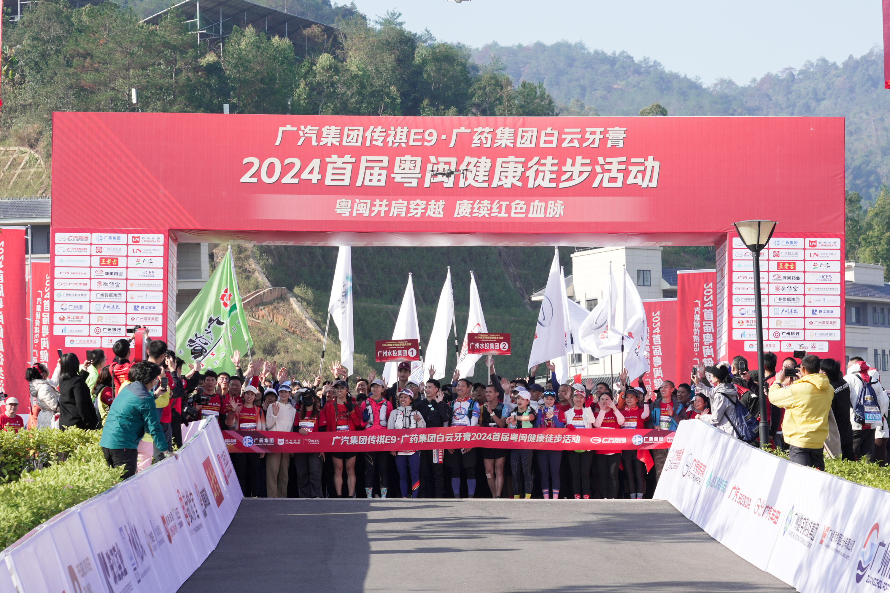 2024年1月6日9時,隨著一聲發令槍響,近3000名戶外健身愛好者和100多名專業選手從廣東省梅州市大埔縣黨校集體出發,2024首屆“粵閩并肩穿越,賡續紅色血脈”廣汽集團傳祺E9·廣藥集團白云牙膏 2024首屆粵閩健康徒步活動(以下簡稱“粵閩健康徒步活動”)正式拉開帷幕。