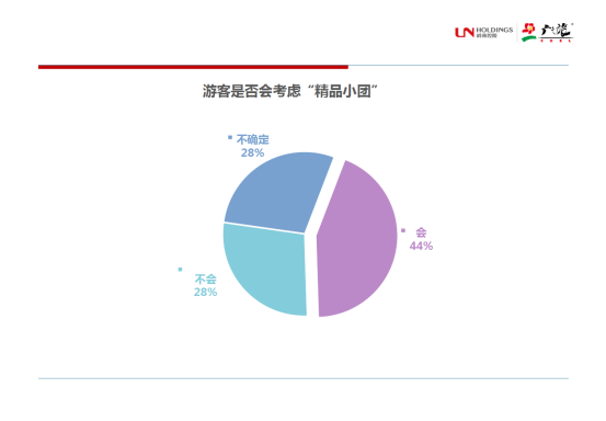 同時,有1成以上的受訪者表示愿意選擇“私人訂制親友出游”的出團方式,《報告》同時對受訪者進行了有關“精品小團”的意向調查,此類產品“團隊人數少,接待標準高,價格會高于常規產品”,受訪者中有43.66%的人表示“會”考慮此類產品。從近期廣之旅各渠道平臺咨詢情況來看,詢問精品小團、私人定制小團的咨詢量較去年同期激增了近6倍,主要以“周邊游小團”及“門票+酒店+用車”組合套餐為主,精品小團、大眾定制預計將會成為疫后周邊游重啟市民新的一個出行重要方式。
