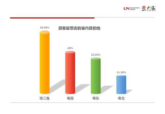 那么,省內及國內有哪些旅游目的地是市民所偏好的呢?《報告》顯示疫后“游客最想去的國內目的地”排名前十名分別是:云南、新疆、寧甘青、西藏、內蒙、東北、華東、北京、海南和湖南。由此可見那些此前受疫情較小且恢復較快的區域更受市民游客的青睞。同時,游客也更為偏好自然風光秀麗、空氣清新、非人員密集的旅游場景,廣之旅預計適合開展生態康養類項目的旅游目的地將是疫后出游的熱門之選。廣東省內方面,綜合來看“珠三角”(38.36%)是游客疫后省內游的首選,其后是粵西(26%)、粵東(22.03%)和粵北(11.39%)地區,海濱沙灘、溫泉度假、生態游、美麗鄉村游等主題更受歡迎,另外值得一提的是,有超過4成(42.19%)受訪者表達了希望在疫情結束后前往澳門旅游的意愿。